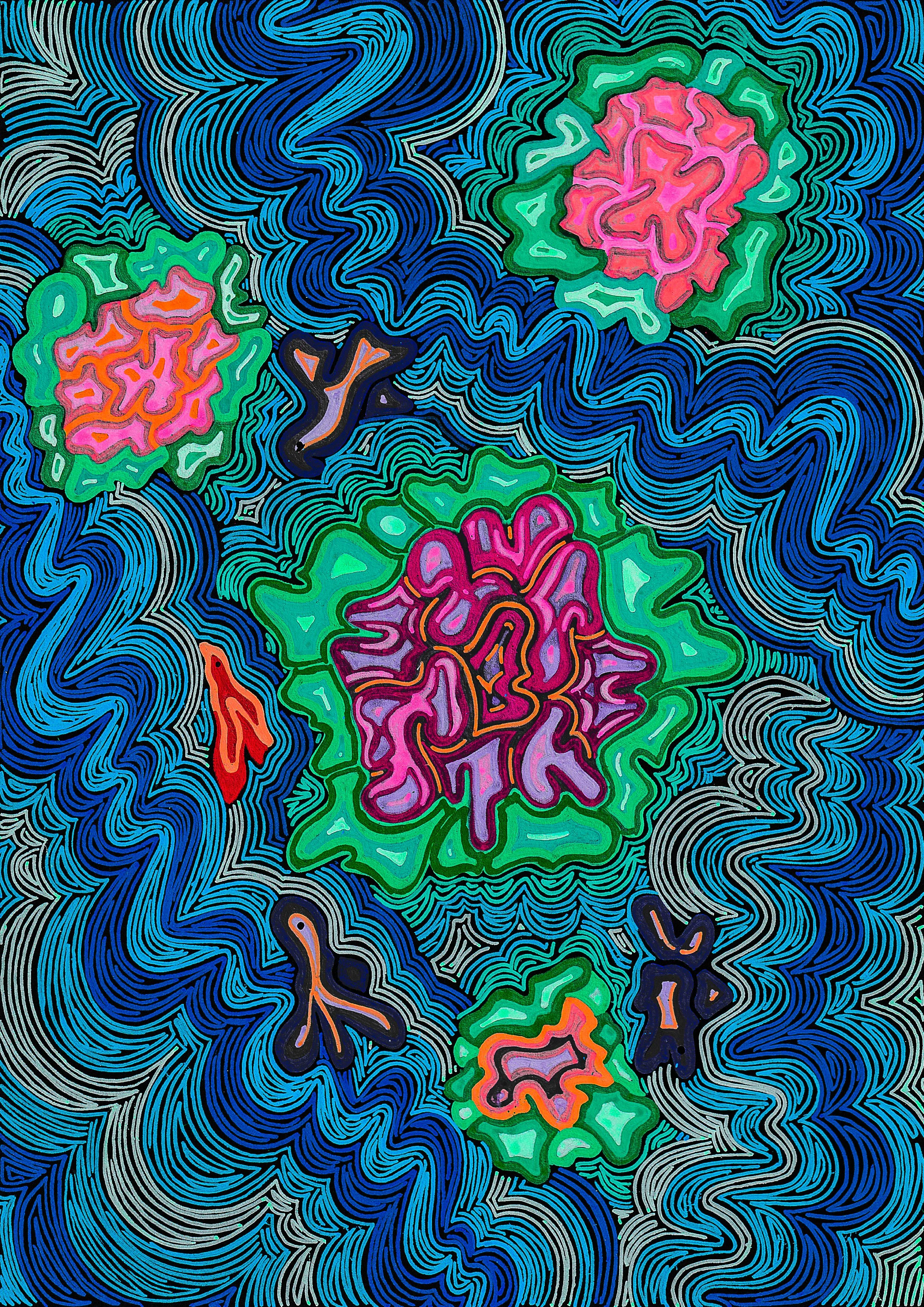 These tote bags feature synesthetic expressive abstract paintings of the music listened to while drawing them. The paintings are made by the artist EceYC based in Copenhagen.